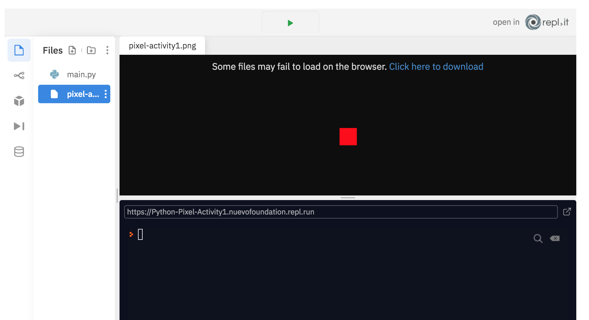 In order to see your image, please click on top left corner (which says ‘Files’), and then click on the image file to see the result.